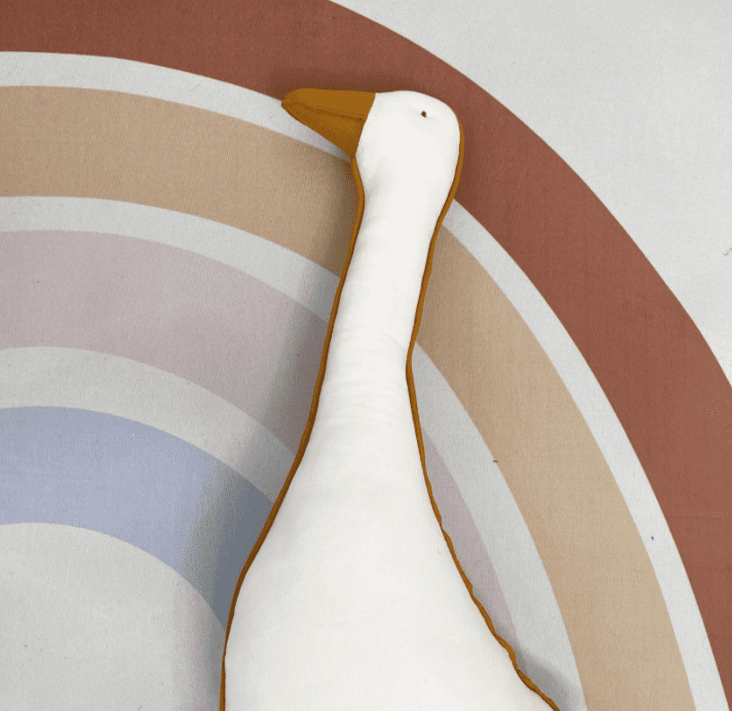 Precioso y original ganso de peluche con diseño nórdico. Especialmente diferente para que los pequeños puedan dejar volar su imaginación jugando con él. Además quedará bonito en cualquier lugar de su habitación por ser muy decorativo.